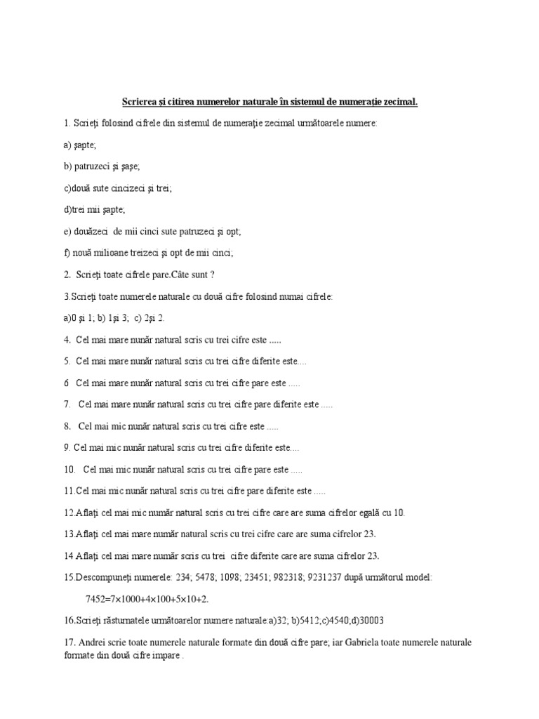 Cel mai mic numar natural de 4 cifre diferite. Apoi cifra zecilor nu poate fi nici 0 dar nici 1 pentru că le am folosit deja deci cifra zecilor este cea mai mică cifră mai mare decât 1 adică 2. Numerele naturale sunt numerele întregi strict pozitive 1 2 3 răspunde. Cel mai mic numar de trei cifre diferite spune trei numere de forma szu scrise cu cifre identice cel mai mare numar de trei cifre cel mai mic număr par de trei cifre diferite răsturnatul lui 471 cel mai nare numar care are la sute 8 si la unități 3 succesorul lui 799 predecesorul lui 990 cel mai mic număr de trei cifre cel mai mare număr par de trei cifre cel mai mic număr. Pe această pagină avem și diverse imagini atractive în png jpeg jpg bmp gif webp tiff psd eps pcx cdr ai logo pictogramă vector alb negru transparent etc.
