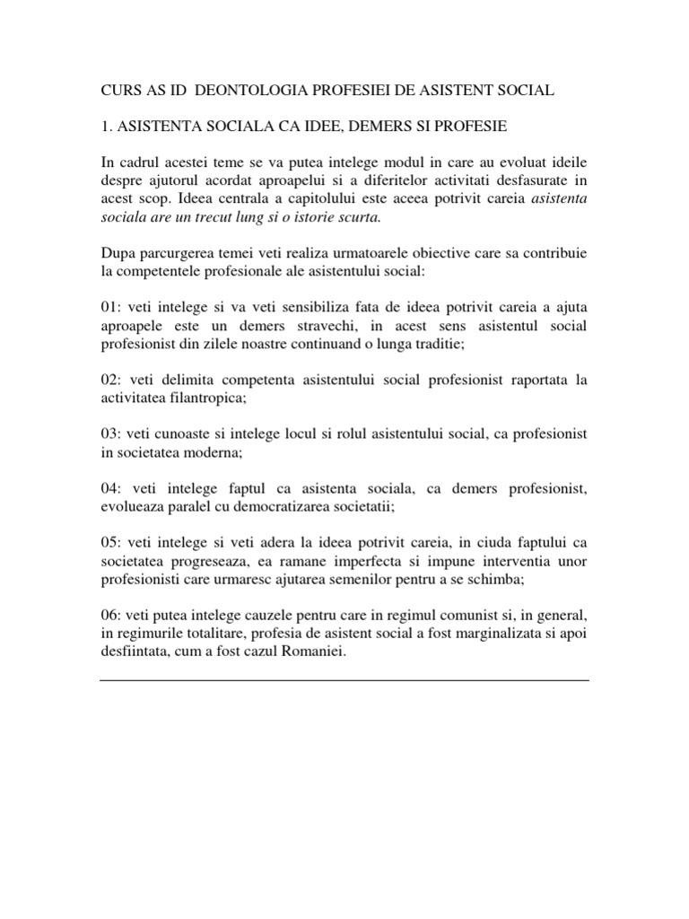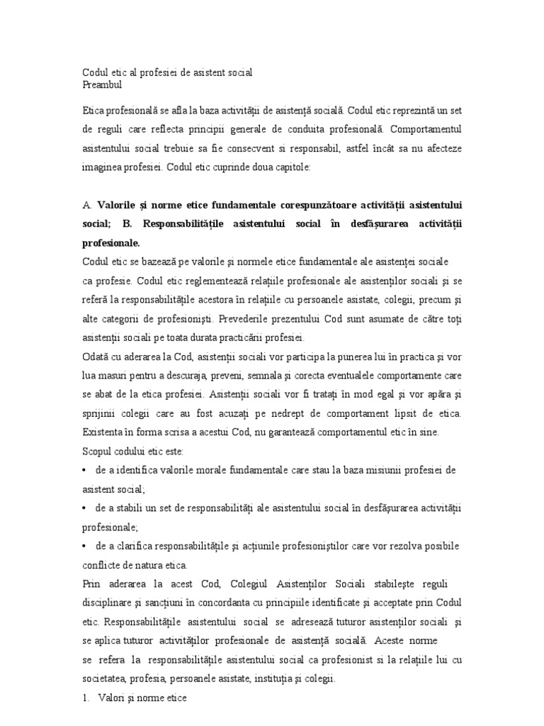 1 din 14 decembrie 2007 al profesiei de asistent social în temeiul dispoziţiilor art. 1 2008 materialul de fata a fost preluat din indaco legenet legenet indaco ro publicat in monitorul oficial partea i nr. Cod privind practica asistentului social codul deontologic al profesiei de asistent social. Plecând de la acest principiu asociaţia română pentru promovarea asistenţei sociale membră a federaţiei internaţionale a asistenţilor sociali a elaborat primul cod deontologic al asistentului social în românia.