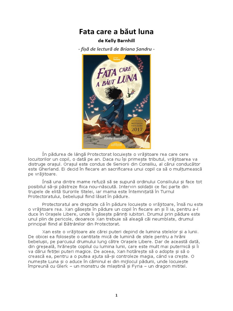 An de an locuitorii sunt nevoiți să sacrifice câte un bebeluș ca vrăjitoarea cea rea să nu se răzbune pe ei. Contact blog promoții abonează te. Deși la început poate părea plictisitoare fata care a băut luna va reuși să te atragă în lumea ei fantastică și să te plimbe prin protectoratul cel monoton prin pădurea cea periculoasă unde locuiește vrăjitoarea și prin orașele libere pline de copii stelari. Vă propunem sa faceți cunoștință cu cartea fata care a băut luna autor kelly barnhill.
