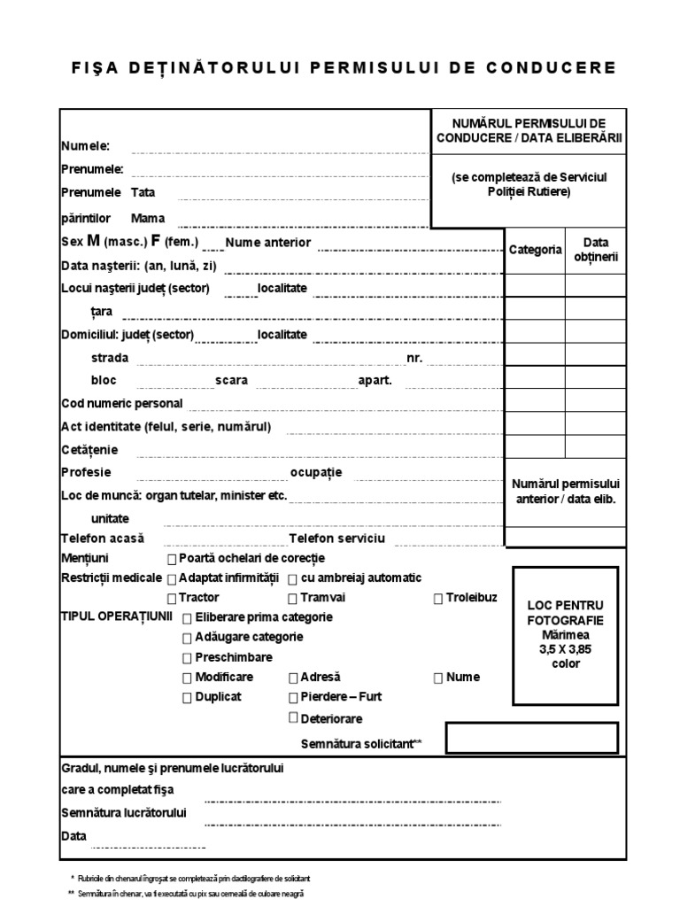 Cum faci programare online. Formular fisa detinatorului permisului de conducere download gratis in format pdf word doc. în cazul în care acesta expiră cererea pentru obținerea unui permis nou se poate face cu două luni înainte. Taxa pentru permis a fost majorata.