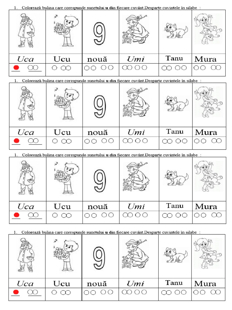 Mai întâi denumește imaginile alăturate și caută cât mai multe cuvinte care încep cu sunetul u.