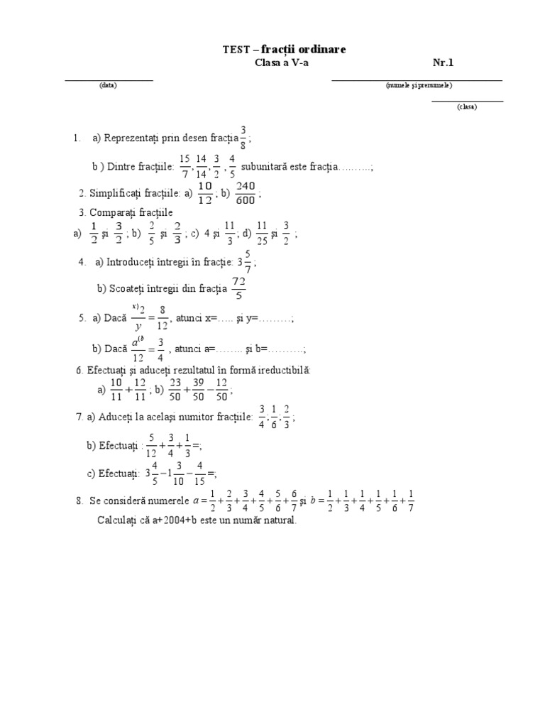Fise de lucru matematica clasa 5 fractii. Creeză dinamic fişe de lucru la matematică în format pdf. Adunarea sau suma a două fracții. Operații cu fracții zecimale finite. More from februarie martie.