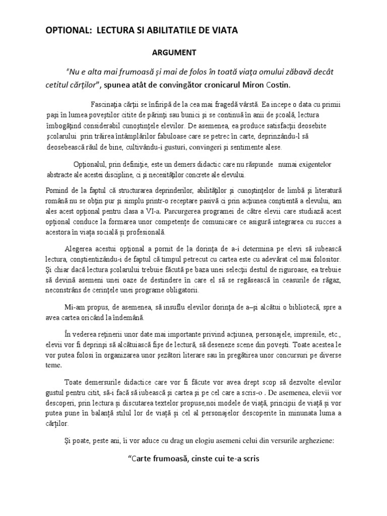 Lectura ca abilitate de viata optional. Materialul propus este optionalul pentru clasa a vi a lectura ca abilitate de viata. Eti ca o floare anume inflorit minilor mele care te au deschis. 0 stele 0 review uri. Lectura ca abilitate 2019.