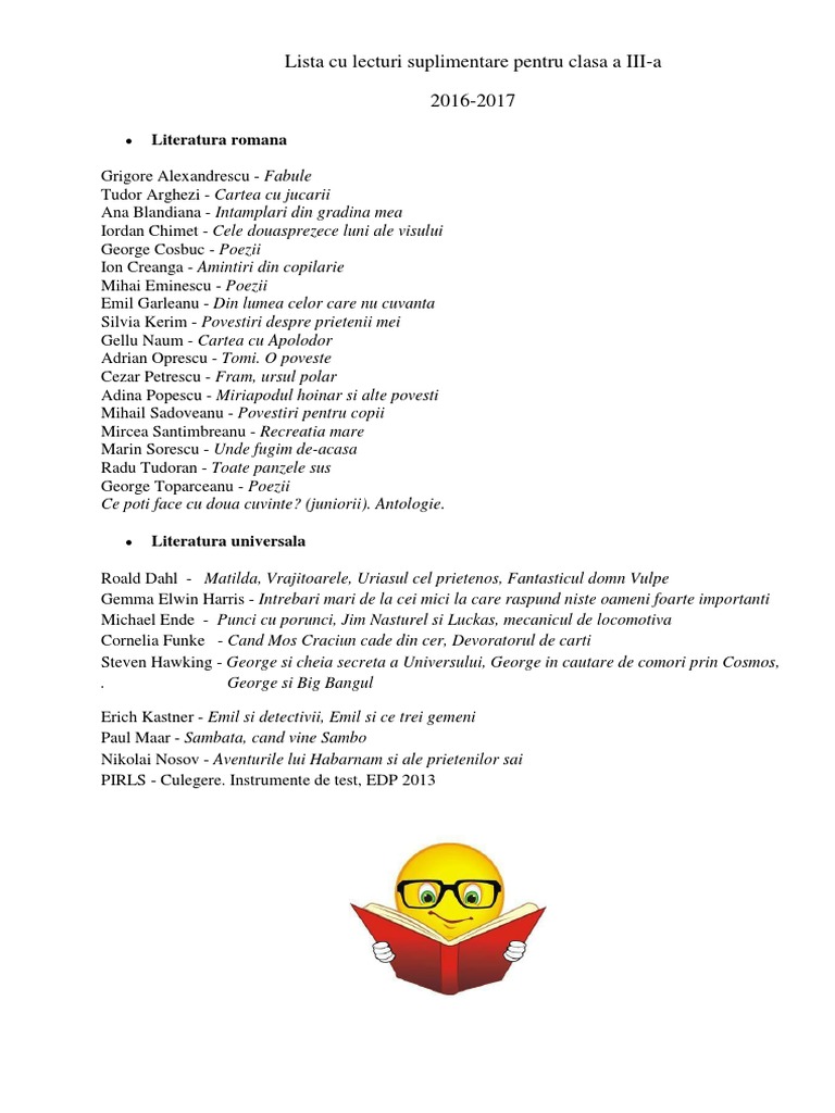 Lista lecturi suplimentare clasa 3. Bibliografie pentru lectura suplimentară clasa a iii a literatură română ion agârbiceanu vol. 0 stele 0 review uri. Lista de lecturi suplimentare pentru vacanta clasa a v a. Lista de lecturi pentru clasa a iii a si fisa de lectura.
