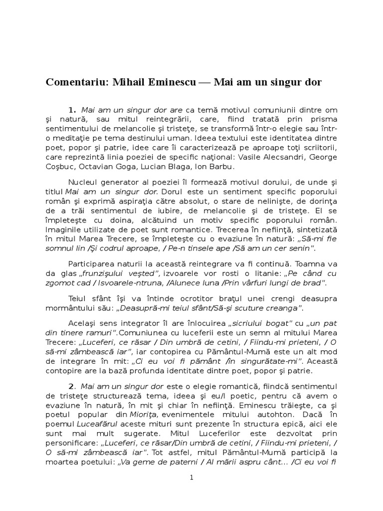 Si în bratele mi intinse să alergi pe piept să mi cazi să ti desprind din crestet valul. Ideea textului este identitatea dintre poet popor i patrie idee care i caracterizeaz pe aproape toi. 1 mausul si tastatura mai am un singur dor figuri de stil mai bine decât mausurile mecanice nu necesită întreţinere şi durează mai mult deoarece nu au părţi în mişcare cu toate că curăţarea unui maus mecanic este foarte simplă mausurile optice nu au nevoi 2 lucian blaga universul poetic mai am un singur dor figuri de stil mai poemele luminii care l impun în ipostaza. Mai am un singur dor mihai eminescu a devenit o persoanalitate de admirat cunoscut in intreaga tara cat si peste hotare poezia mai am un singur dor este o poezie deosebit de frumoasa si foarte melancolica ea reprezinta o elegie in care poetul isi exprima sentimentele de tristete gandul mortii ultima sa dorinta.