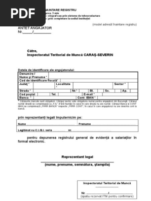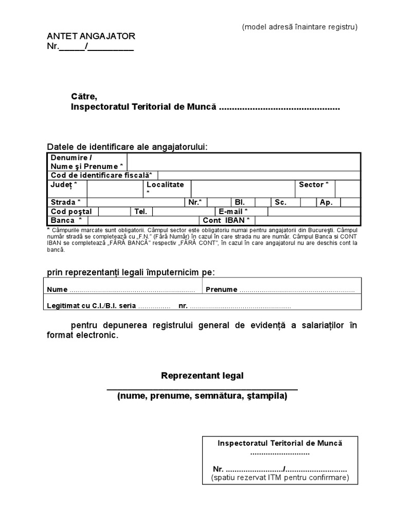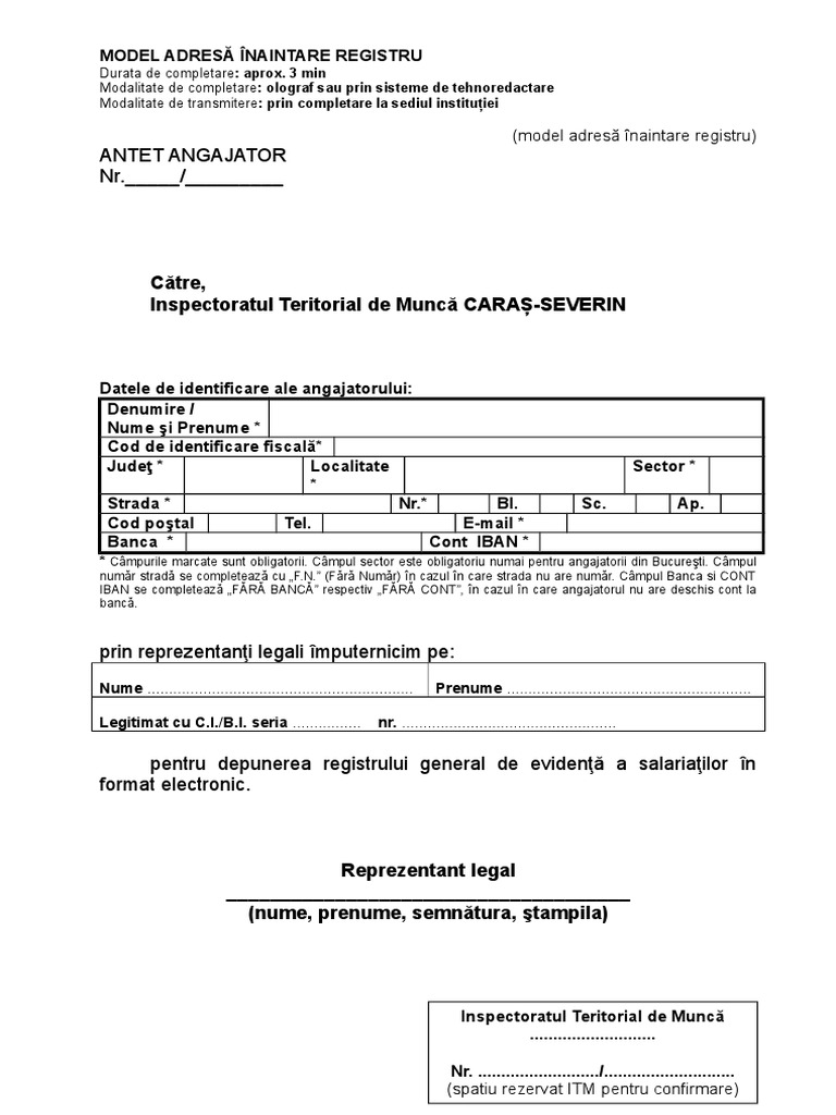 Model adresa inaintare registru itm bucuresti. Contacafe ro last modified by. Inspectoratul teritorial de muncă. Denumire nume şi prenume cod de identificare fiscală judeţ localitate sector strada nr bl. Datele de identificare ale angajatorului.