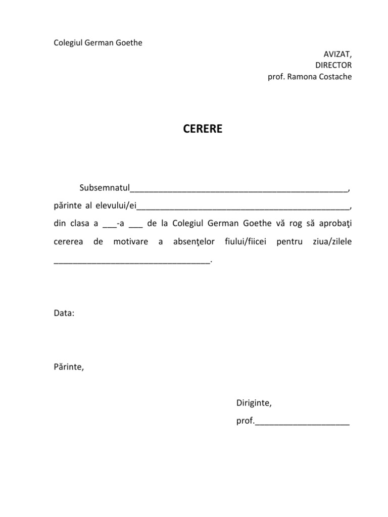 Vezi mai jos cum arata cererea de motivare a absentelor scolare. 8 26 of 10 file size. In casuta de mai jos iti gasim imediat documentul dorit.
