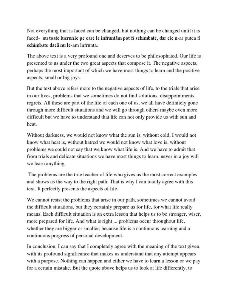 Times when we wish we could avoid what we know we must face. You are going to convince the listeners that you are right and they should change their minds and accept your point of view. As this statement suggests not everything can be changed. What is your point of view.