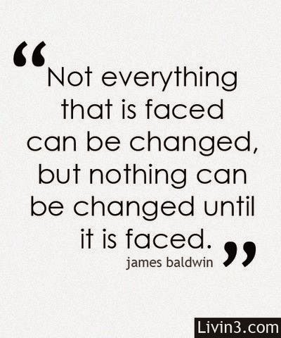 In order to build a better future one marked by a greater degree of justice and opportunity we must confront the sources of the inequity that have plagued our society. Not everything that is faced can be changed posted on july 10 2012 by barry but nothing can be changed until it is faced. Not everything that is faced can be changed but nothing can be changed until it is faced a short open letter to rev. Not everything that is faced can be changed but nothing can be changed until it is faced james baldwin read more quotes from james baldwin.