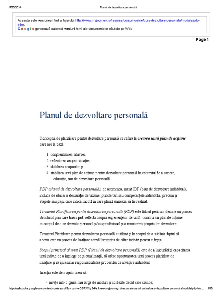 Numai tu stii cu adevarat ce vrei sa faci si unde vrei sa ajungi in viata iar cheia realizarilor tale este in mainile tale prin actiunile pe care le intreprinzi. Academia edu is a platform for academics to share research papers. Profesor indrumator prezentat profesorului. Plan de dezvoltare personală.
