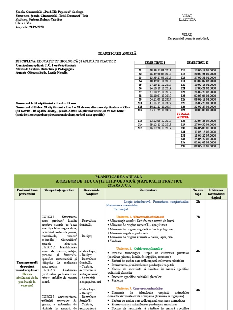 Planificările sunt realizate de prof. Manuale scolare pentru minoritati. Educatie tehnologica si aplicatii practice manual pentru clasa a vi a marinela mocanu. 5 planificare et ap v 2018 structură an școlar 2018 2019.