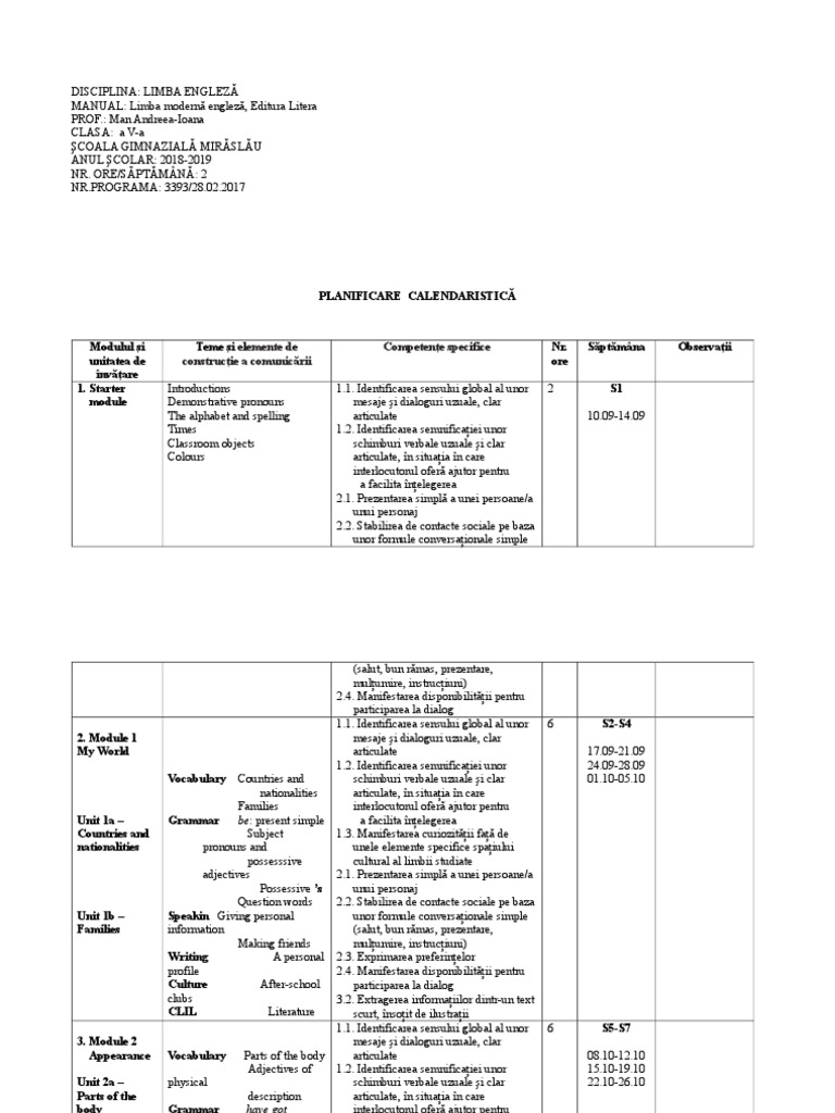 A v a diana todoran editura art bucureti 2017 numr de ore pe sptmn. Planificare comunicare in limba engleza cls i descarca in format word. Model de planificare de unitate de invatare proiect doc by inspector scolar de specialitate ultima modificare 2015 09 17 11 00 model de planificare de unitate de invatare proiect doc microsoft word document 50 kb 51712 bytes. Clasa a v a limba engleză intensiv planificare anuală pdf planificare anuală docx limba și.
