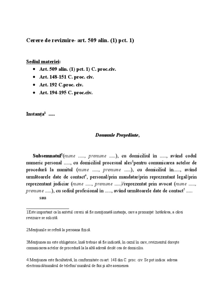 Revizuire art 509 alin 1 pct 1. 1 cod procedură civilă. Revizuire articolul 509 pct. 453 cod procedură penală. Cererii de revizuire nu poate fi primita pentru argumentul care vizeaza nerespectarea cerintei impuse de art.