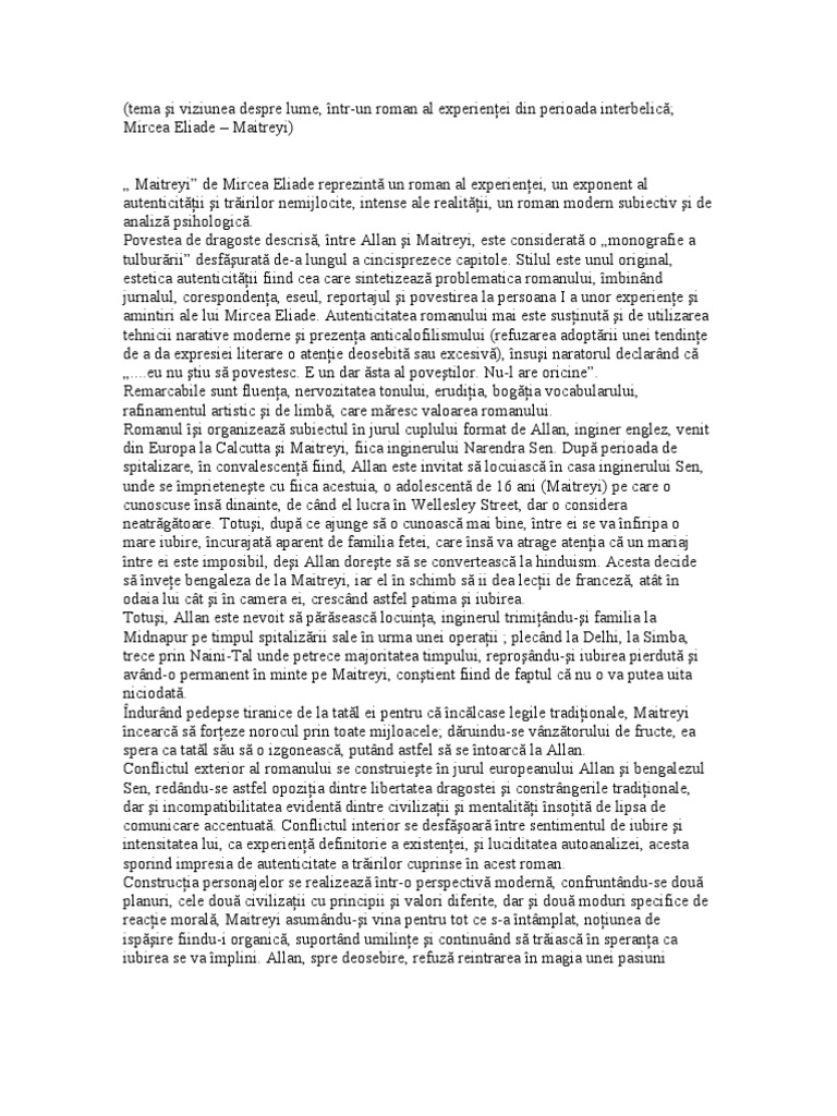 Roman al experientei ultima noapte. Maitreyi este un roman al experienței alături de ultima noapte de dragoste întâia noapte de război. This entry was posted in comentarii limba română and tagged camil petrescu comentariu literar intaia noapte de razboi roman al experientei roman interbelic roman modern subiectiv psihologic ultima noapte de dragoste. Opera ultima noapte de dragoste intaia noapte de razboi a fost publicata in anul 1930. Roman psihologic si al experientei ultima noapte de dragoste intaia noapte de razboi tema si viziunea despre lume semnificativa pentru viziunea moderna asupra lumii este creatia lui camil petrescu ultima noapte un roman subiectiv de analiza psihologica aparut in anul 1930.
