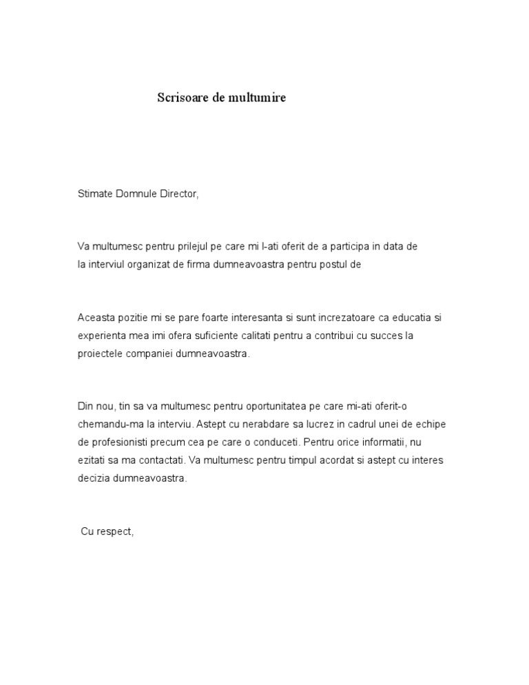 Scrisoare De Multumire Pentru Ajutorul Acordat