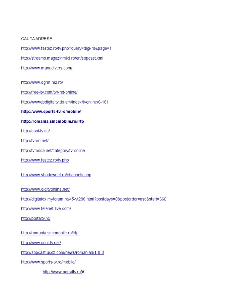 Streams magazinmixt ro channels index. Play sopcast url pentru url sopcast si sopcast. Programe tv online romanesti in kodi xbmc adaugat de oxus in kodi tv online in data de ianuarie 22 2015 kodi xbmc un media player simplu si performant care va permite sa rulati direct de pe internet filme si seriale posturi tv concerte piese audio si aplicatii multimedia in mod gratuit. Daca aveti o aveti o adresa a unui canal sopcast sau id ul unui canal il puteti introduce manual in pluginul p2p streams din ecranul de start al pluginului folosind linkurile sopcast. Play sopcast id pentru id canal sopcast.