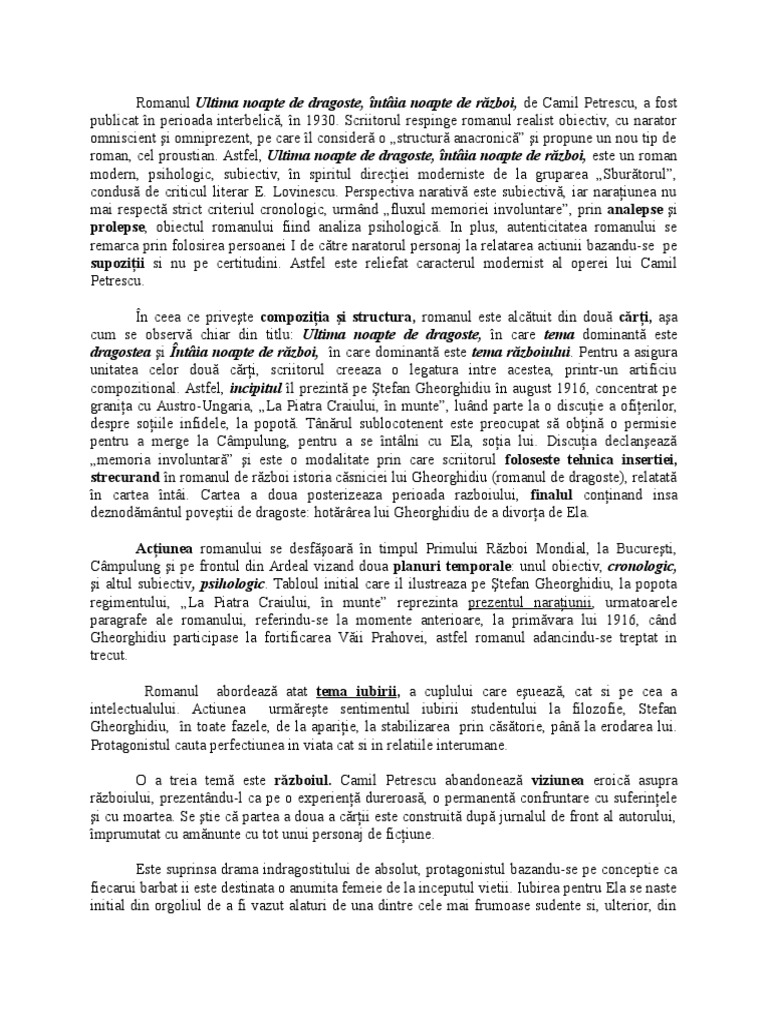 Ultima noapte de dragoste intaia noapte de razboi tema si viziunea despre lume roman modern subiectiv de analiza psihologica ca. In opinia mea romanul ultima noapte de dragoste intaia noapte de razboi este un roman care corespunde tuturor cerintelor lui eugen lovinescu cu privire la modernism aducandu l pe stefan gheorghidiu in prim plan. Ultima noapte de dragoste intaia noapte de razboi. Tema si viziunea despre lume intr un roman din perioada interbelica.