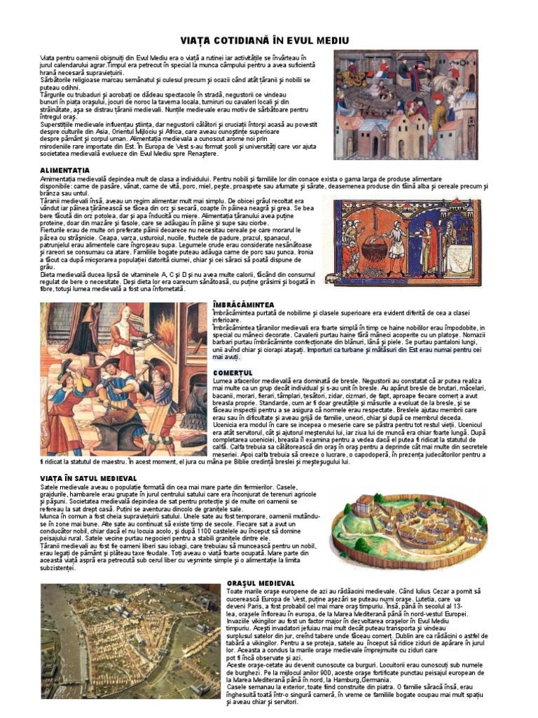 Unele imagini sunt preluate de pe materiale cu tema similara de pe didactic ro. Viata cotidiana in evul mediu. Srbtorile religioase marcau semnatul i culesul precum i ocazii cnd att ranii i nobilii se puteau odihni. 0 stele 0 review uri.